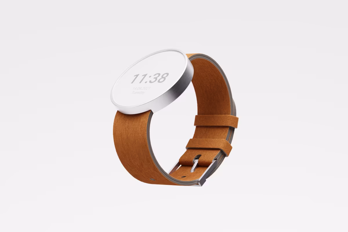 Fading time is an e-paper wristwatch concept. It suits as a modern alternative to mechanical watches since it has a customizable non-backlit home screen with digital numbers but retains the minimalism of conventional timepieces. The display has to be updated only periodically which allows for a long battery life. The symmetrical frame sits naturally on both wrists.